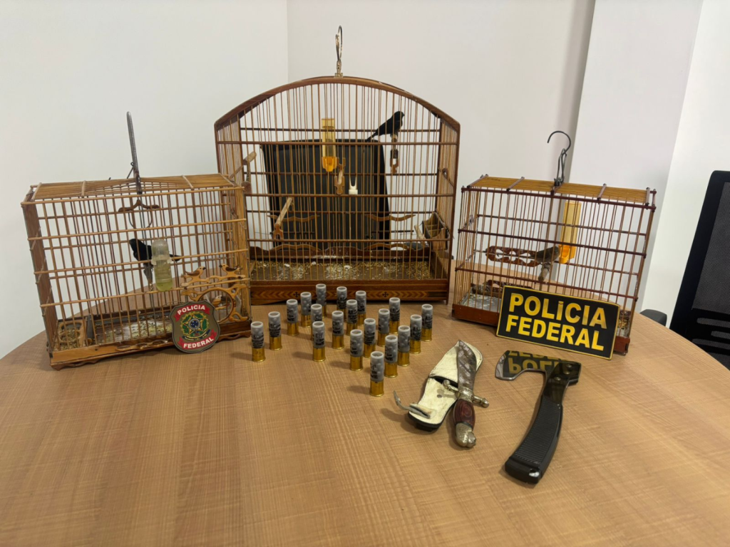 Durante a fiscalização, foi verificado que as aves aparentavam pertencer a espécies nativas do Brasil. Também foram encontradas 20 munições e duas armas brancas.