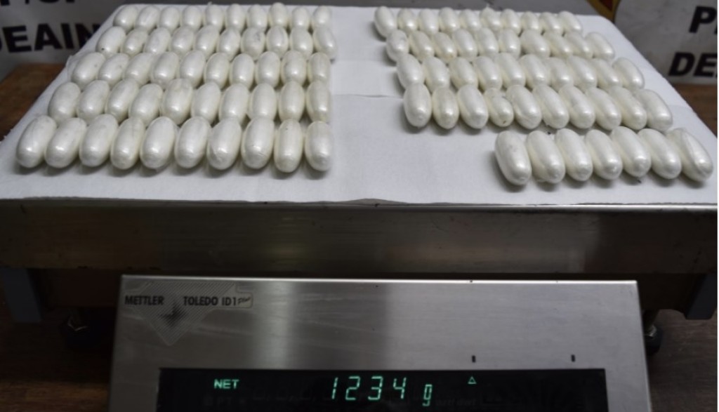 Já no controle migratório, policiais federais abordaram um passageiro que se preparava para embarcar para Paris, na França. Durante a entrevista, ele confessou estar transportando cápsulas de cocaína em seu estômago. O suspeito foi detido e será encaminhado ao hospital, onde ficará sob custódia hospitalar da Polícia Penal do Estado de São Paulo. Ele permanecerá no local até a expulsão total das cápsulas e receber alta médica.