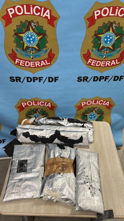 Durante fiscalizações de rotina, policiais federais identificaram a droga oculta em um fundo falso da bagagem despachada pelo passageiro.