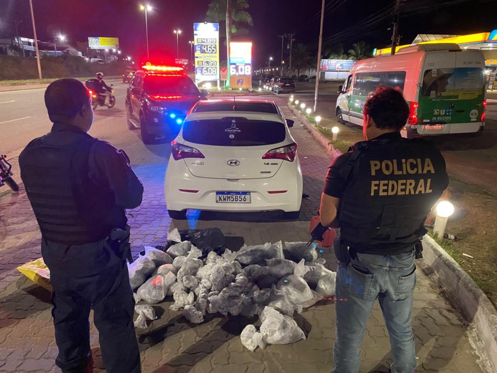 A abordagem ao veículo foi realizada por policiais federais da Delegacia da PF em Macaé, destacados no Posto da Polícia Federal em Cabo Frio, com apoio de policiais militares do 25º BPM.