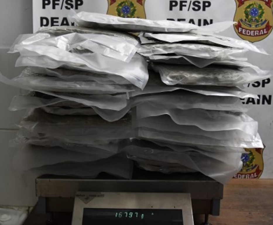 Já um passageiro, proveniente de Bangkok, na Tailândia, foi detido por policiais que operam cães de faro, com a droga skunk (um tipo de maconha) no interior de sua mala.