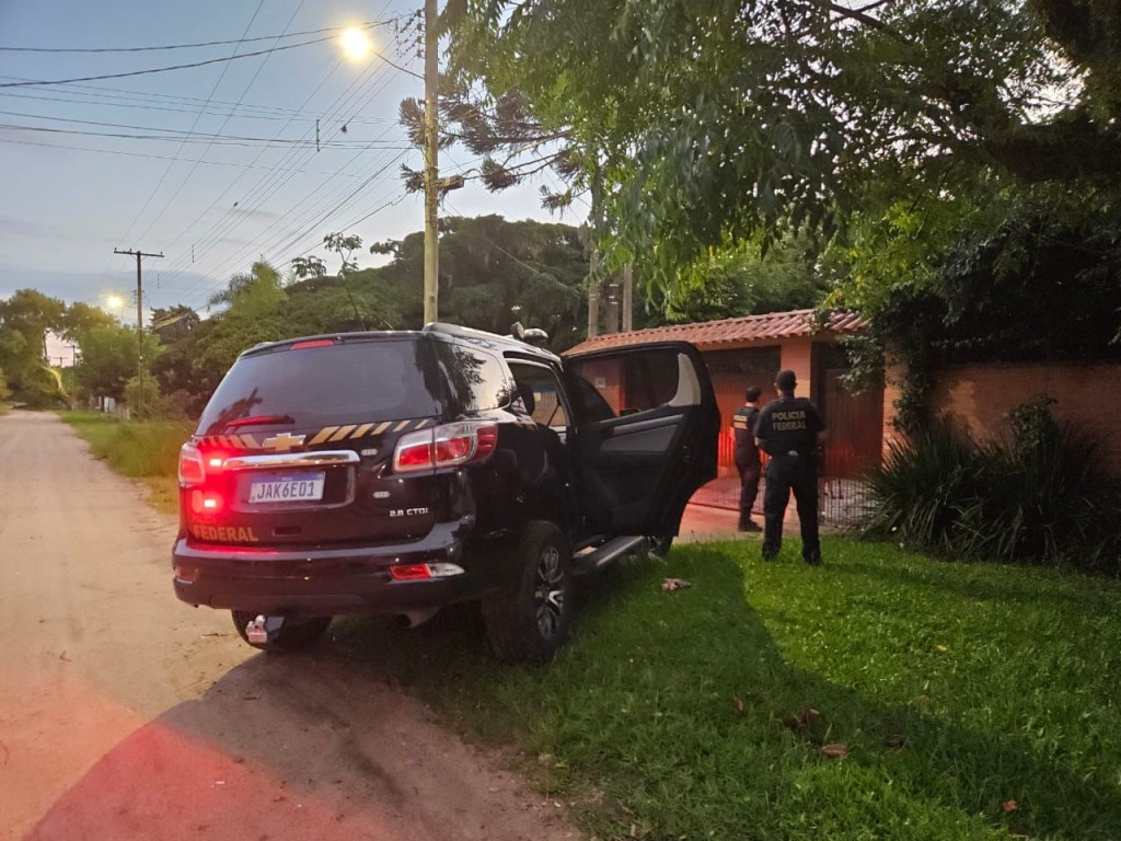 Equipe de policiais federais cumpriu um mandado de busca na residência do suspeito. Foram apreendidos uma espingarda calibre 12, uma carabina de pressão, um facão e diversos potes contendo substância com características de maconha ou “skunk”.
