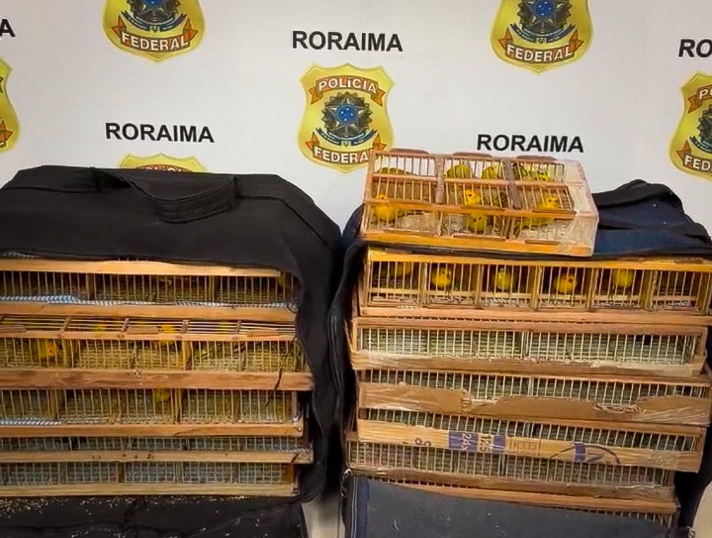 Boa Vista/RR. A Polícia Federal realizou, nessa segunda-feira (23/2), a prisão em flagrante de dois indivíduos suspeitos de transportar ilegalmente cerca de 350 aves silvestres da espécie canário-da-terra (Sicalis flaveola) na Rodoviária de Mucajaí/RR.