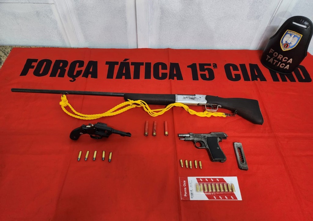 No último sábado (02), após a ocorrência de disparo de fogo registrada no 30/10/2024, no distrito de São José das Torres em Mimoso do Sul, a equipe da Força Tática realizou patrulhamento no local, quando apreenderam uma pistola calibre 7.65, um revólver calibre 32, uma espingarda calibre 36 e 23 munições.