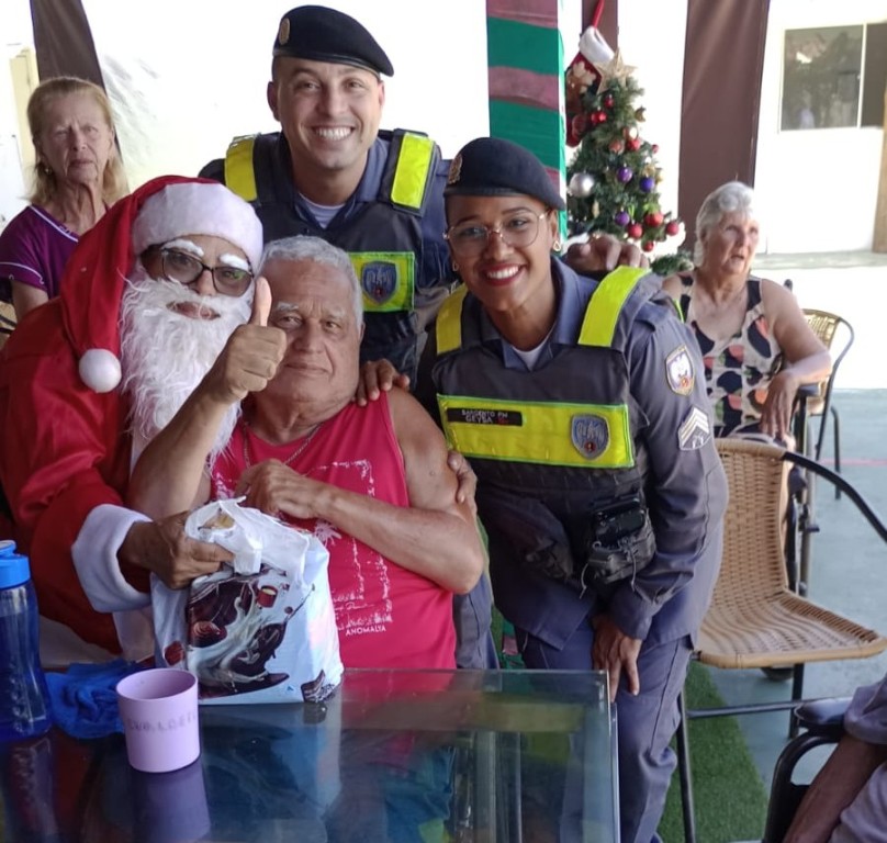 Policiais militares do 10º Batalhão da Polícia Militar do Espírito Santo apoiaram a entrega das doações arrecadadas por meio da campanha Adote um Idoso, realizada no município de Guarapari. A Unidade abraçou a campanha durante todo o período natalino, promovendo a arrecadação de fraldas geriátricas e alimentos não perecíveis, com o objetivo de levar acolhimento, cuidado e atenção aos idosos atendidos pela ação solidária.