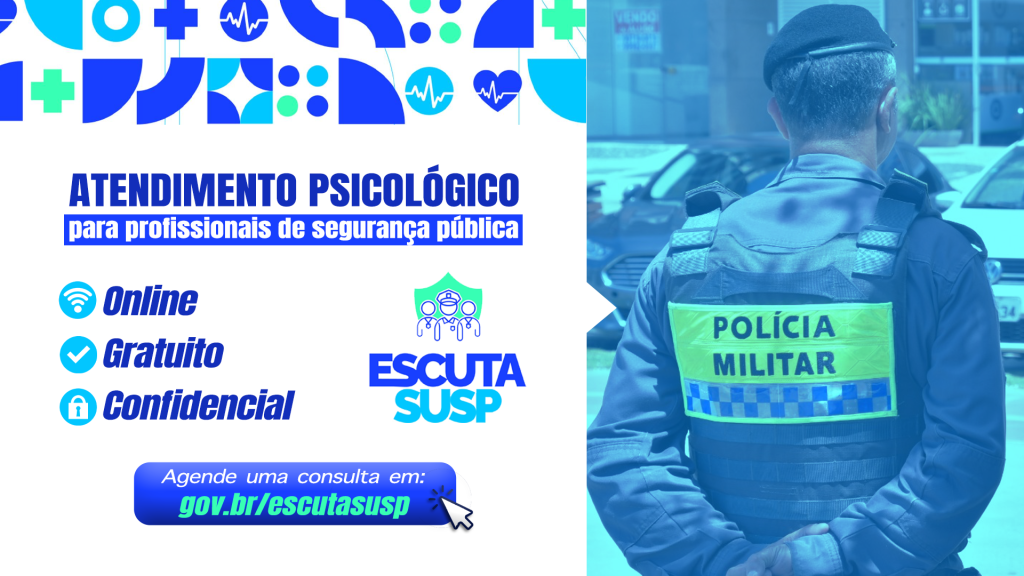 A Polícia Militar, informa que estão disponíveis atendimentos psicológicos on-line, oferecidos pelo programa Escuta SUSP, voltado exclusivamente para profissionais da segurança pública.