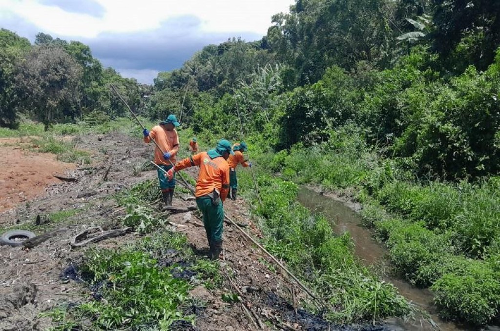 A limpeza acontece de forma manual e mecanizada. A equipe é formada por 15 trabalhadores com suporte duas máquinas escavadeiras.
