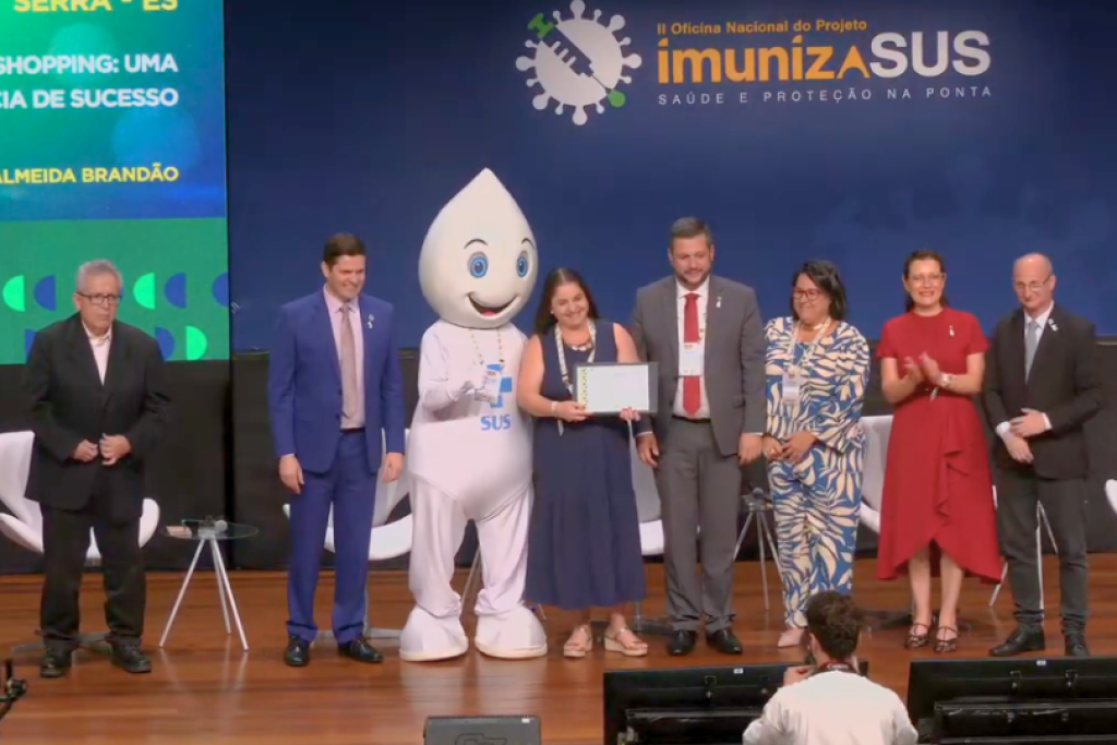 A Secretaria de Saúde da Serra foi premiada pelo Conselho Nacional de Secretarias Municipais de Saúde (Conasems) durante a II Oficina Nacional do Projeto ImunizaSUS, com o trabalho “Vacinação no shopping: uma experiência de sucesso”. O trabalho da equipe de Imunização do município obteve uma das melhores avaliações.