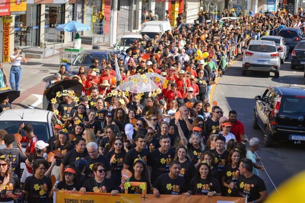 Na manhã desta quarta-feira (21), cerca de 1,5 mil pessoas tomaram a Avenida Central, na Serra, em uma grande caminhada pela proteção de crianças e adolescentes. A mobilização seguiu até a Praça Miguel Ângelo, com um percurso de aproximadamente dois quilômetros, reunindo moradores, estudantes, servidores e lideranças comunitárias.