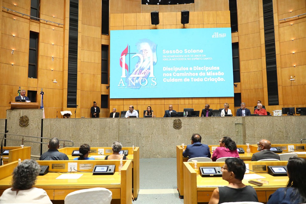 A sessão solene reuniu lideranças religiosas, fiéis e convidados no plenário da Ales. Entre os presentes estava o bispo presidente da Igreja Metodista do Brasil da Quarta Região Eclesiástica — que abrange os estados do Espírito Santo, Minas Gerais e Ceará —, Bruno Roberto Pereira dos Santos.
