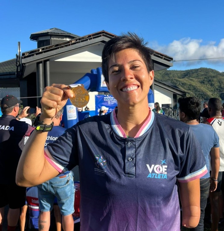 A capixaba Érica Rodrigues conquistou o título de campeã no Campeonato Pan-Americano de Triathlon no último sábado (07), em Calima, na Colômbia. Com desempenho impecável, a atleta subiu ao lugar mais alto do pódio na classe PTS5 após completar os 750m de natação, 20km de ciclismo e 5km de corrida.